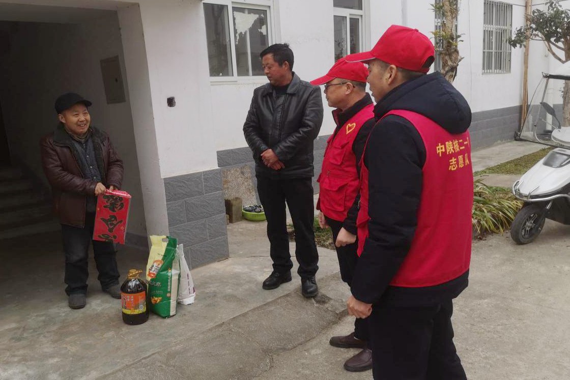 2月7日上午,在2024年春節(jié)將至之際,二一四大隊黨委副書記、總經理司金強等一行五人,趕赴結對共建村城固縣上元觀鎮(zhèn)韓家營村開展走訪慰問活動,為困難群眾送去米、面、油、春聯(lián)等慰問品,把國企的關懷與溫暖送到他們手中。
