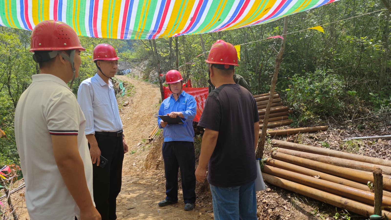 按照公司領導班子成員“四下基層”工作安排,5月22日,公司黨委書記、董事長鄧盛波前往二一四大隊黃泥坪項目指導檢查工作,公司安全環保部部長董連志、行政部部長李陽陪同檢查。