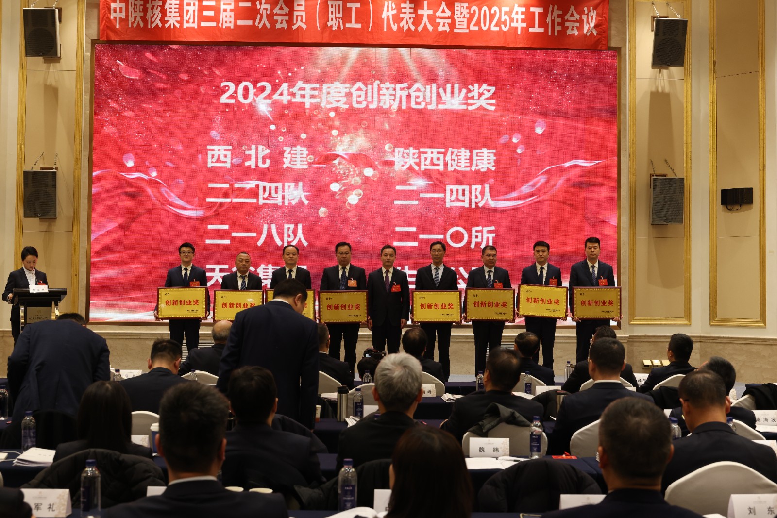 2025年1月18日,中陜核集團召開三屆二次會員(職工)代表大會暨2025年工作會議,公司榮獲集團“創新創業獎”、黃泥坪金礦詳查項目組榮獲集團“先進集體”和“安全環保先進集體”榮譽稱號。