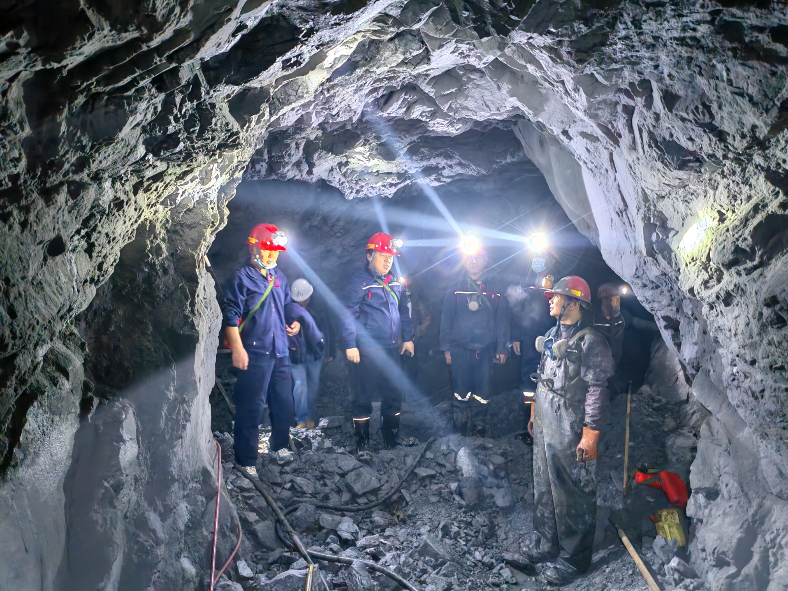 郭建軍一行到達項目硐探施工現(xiàn)場后,全面檢查了硐探工程現(xiàn)場實施情況,仔細聽取了項目組安全員對項目進展和安全管理工作的詳細匯報,隨后深入坑道平巷內(nèi)檢查現(xiàn)場施工情況。