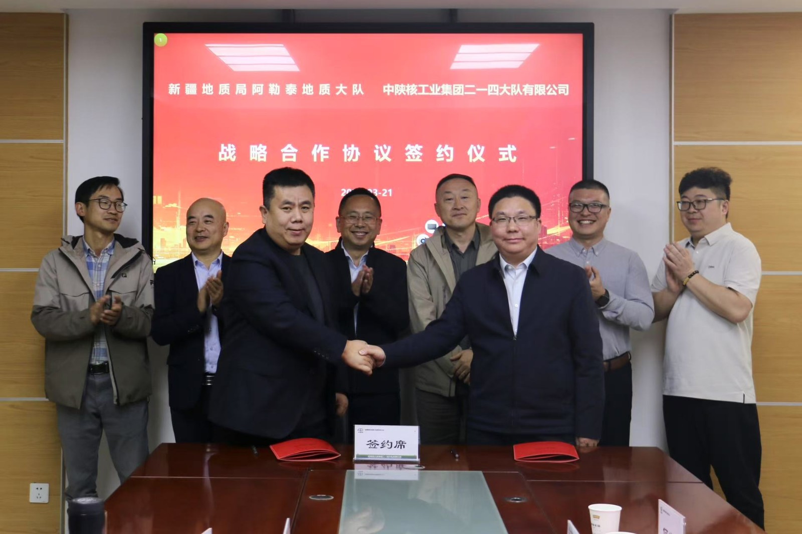 2025年3月21日,新疆地質局阿勒泰地質大隊黨委副書記、大隊長蔣世新帶隊到中陜核工業集團二一四大隊有限公司進行座談交流,并簽訂戰略合作協議。公司黨委書記、董事長付星主持會議,公司黨委委員、總經理王朋、副總經理冉軍林以及地勘相關部門負責人參加會議。