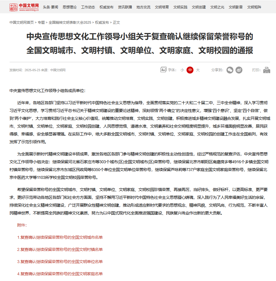 此次復查確認繼續保留全國文明單位榮譽稱號,是對公司過去精神文明建設工作的高度認可,更是對未來工作的激勵和鞭策。希望全體員工以此為契機,珍惜榮譽,再接再厲,持續深化精神文明建設,將文明風尚融入到日常工作和生活的方方面面,為公司的高質量發展提供更加強大的精神動力和文化支撐,為社會文明進步作出更大貢獻!