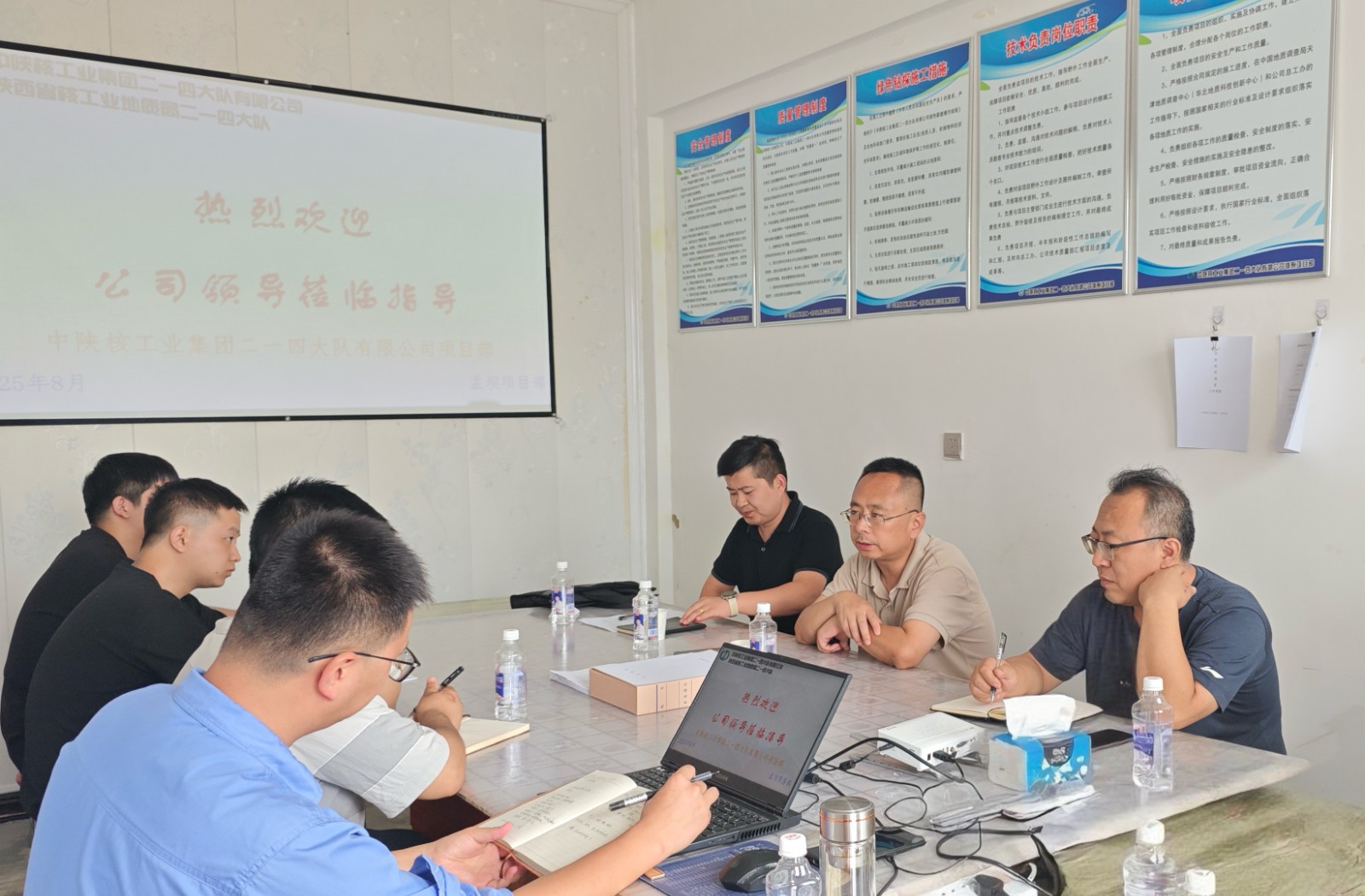 慰問結(jié)束后,付星一行與項目部人員召開座談會。會上,付星宣講了公司改革的核心政策,詳細(xì)闡述了公司未來的戰(zhàn)略規(guī)劃和發(fā)展方向,鼓勵項目部全體人員把握發(fā)展機遇,在實干中實現(xiàn)個人與企業(yè)的共同成長。隨后,項目部負(fù)責(zé)人從項目進度、人員培訓(xùn)、安全生產(chǎn)、質(zhì)量管控等方面作了詳細(xì)匯報。付星對項目部前期工作取得的成效給予了充分肯定,同時針對項目當(dāng)前面臨的問題和挑戰(zhàn)提出了指導(dǎo)意見:一是以精益化管理為目標(biāo),完善項目部的建設(shè);二是要細(xì)化工作,完成各個工作步驟的流程圖;三是以成果為導(dǎo)向,推進項目進展。